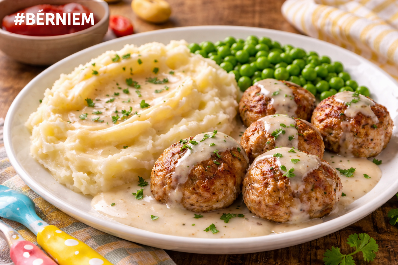 🥔 Kartupeļu biezenis ar piena mērci un kotletēm
